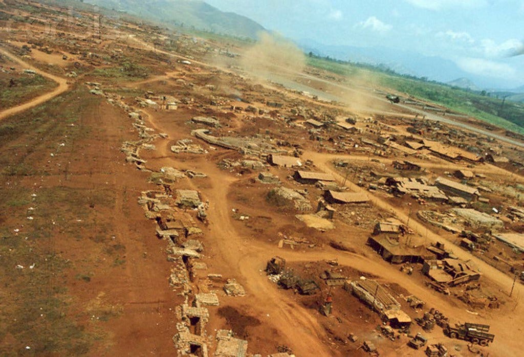Eventually, the US military realized it was futile to try to maintain and protect the base. So, they abandoned it… but first, they bombed it to the ground. Leveled every building. Flattened every bunker and fortification. Destroyed the air strip.